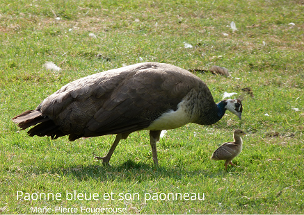 Nom anglais: Blue Peafowl, Common Peacock, Common Peafowl, Indian peacock, Indian Peafowl, Peafowl